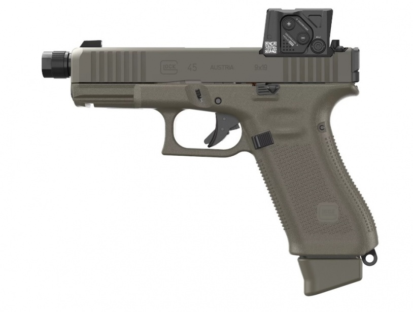 Glock 45 Gen6, r. 9 Luger, 2x zásobník, výměnné hřbety rukojeti, základna pro montáž kolimátoru vč. třech adaptérů.