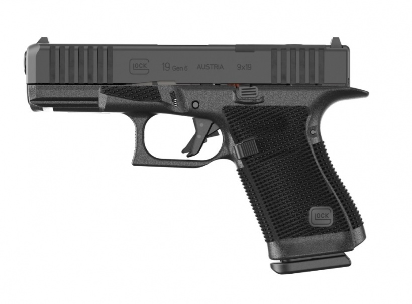 Glock 19 Gen6, r. 9 Luger, 2x zásobník, výměnné hřbety rukojeti, základna pro montáž kolimátoru vč. třech adaptérů.